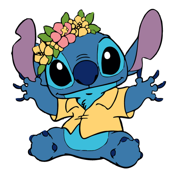 Sitting Stitch with Flower Crown and Hawaiian Shirt Full Body Vector SVG PNG - Premium Vector Download | CartoonVectors