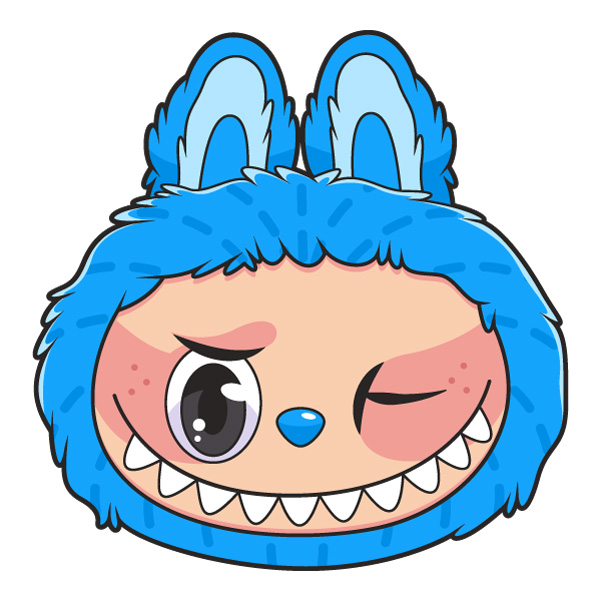 Winking Labubu Blue Monster Head Mascot Vector PNG Download - Free Vector Download | CartoonVectors
