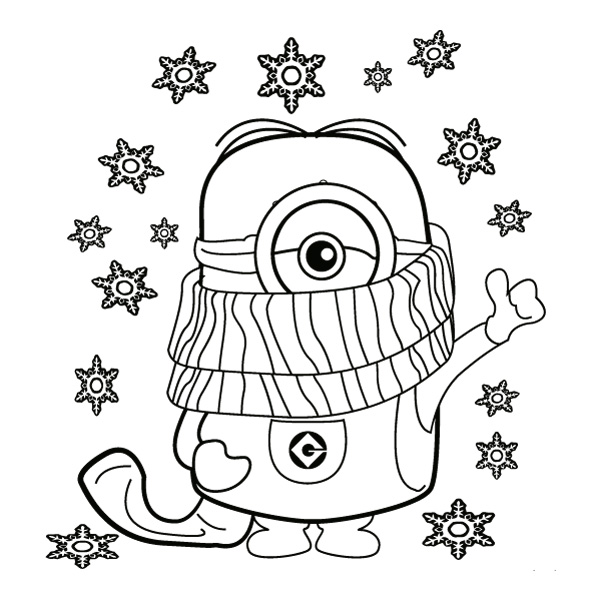 Waving Winter Minion with Scarf Line Art Full Body Vector PNG Download - Free Vector Download | CartoonVectors